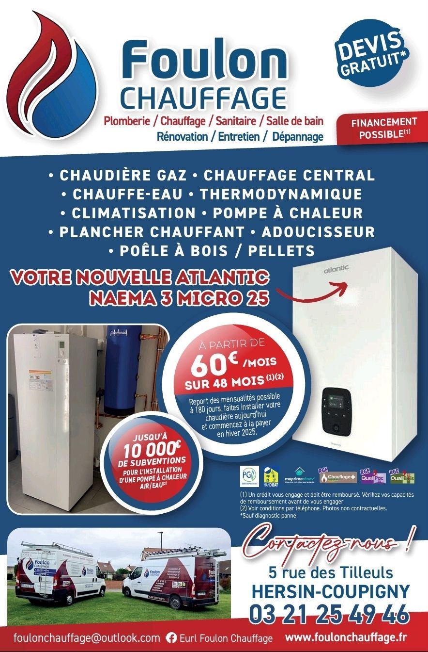 Foulon Chauffage, votre artisan local à Hersin-Coupigny, met son expertise à votre service pour vos chantiers en plomberie, chauffage,climatisation sanitaire et salle de bain.